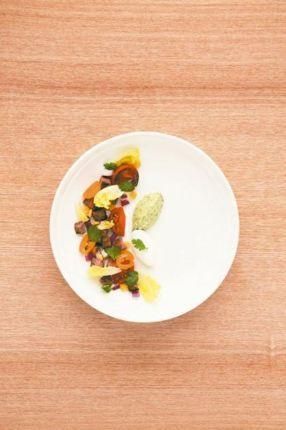 莱姆汁2大汤匙、酱油1/2茶匙、洋葱末1大汤匙、辣椒粉少许、香菜切碎1茶匙