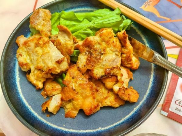 热锅凉油,注意油量不需多,只需抹匀锅底。将鸡胸肉放入锅中,中火慢煎,煎至一面金黄酥脆后再翻面。由于鸡胸肉容易煎老,所以需要留意颜色变化,一旦变色即可出锅,用刀切一下确认内部不带粉状即可。