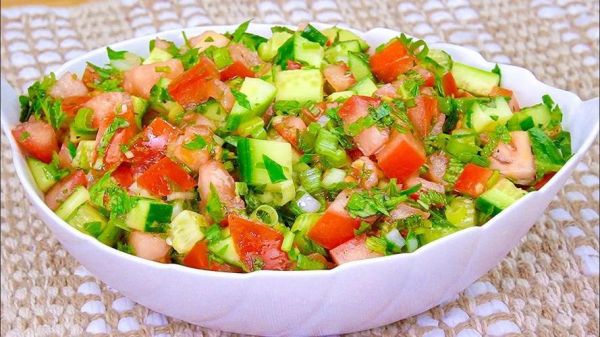 所需材料:两根黄瓜、一个番茄、少许洋葱以及几片薄荷叶。再准备一些柠檬汁和少许黑胡椒作为调料。这款沙拉的特点是清爽不腻,同时富含维生素C和抗氧化成分,低热量特性使其成为夏日里的理想选择。