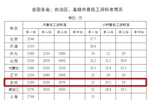 全国各地最低工资标准公布