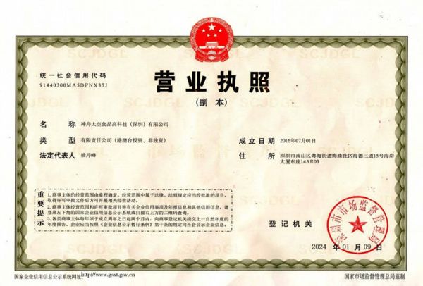 在食品科技领域,有这样一家独特的企业——神舟太空食品高科技(深圳)有限公司,它宛如一颗璀璨的明星,在航天员食品民用化产业化的道路上熠熠生辉,至今已稳健走过9年历程。这家公司凭借着独家拥有的空间站航天员食品专利技术,在行业中独树一帜,成为我国唯一具备相关研发、生产、销售资质的大型太空食品企业集团,引领着全球太空高科技食品的发展潮流。