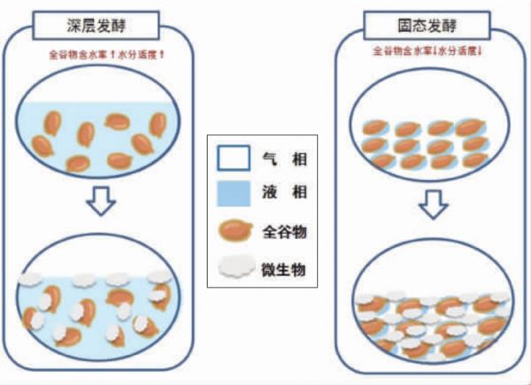 图1 全谷物深层发酵和固态发酵对比示意图