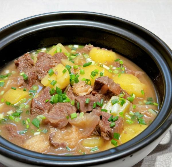 藏餐的核心,离不开高原之宝——牦牛和藏羊。牦牛肉质紧实,富含蛋白质,是抵御严寒的宝贵能量来源。最经典的吃法莫过于牦牛肉火锅。这可不是普通的涮锅,而是用牛骨经八小时以上慢炖出醇厚高汤作为锅底,食材预先煮熟,围炉而坐,为的是那一口直达心底的温暖。而土豆炖牦牛肉则是家家户户的温情味道,牛肉酥烂,土豆吸饱了汤汁,质朴却深入人心。