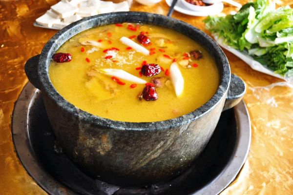 藏餐在发展中,也巧妙吸收了周边地区的饮食特色。咖喱羊排便带有尼泊尔风味,香浓的咖喱与酥烂的羊排相结合,别具一格。鲁朗石锅鸡则是林芝地区的名片。用当地藏香鸡,加入手掌参、松茸等珍贵山货,放入墨脱特有的皂石锅中慢炖数小时。石锅富含矿物质,能使汤汁愈发鲜美金黄,不仅味美,更有滋补之效,是穿越318国道旅人必尝的慰藉美食。