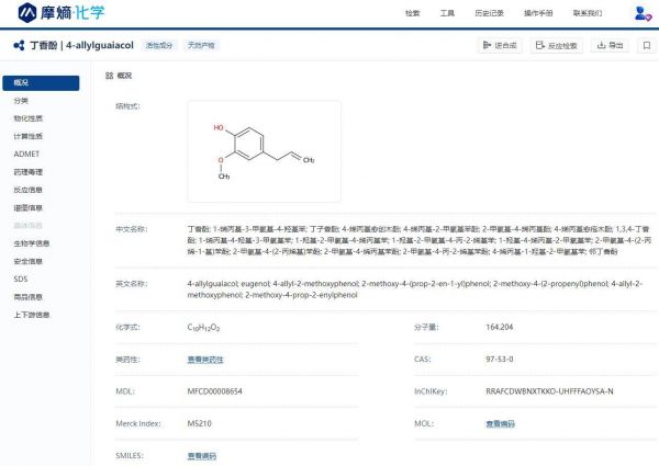 丁香酚的化学结构 图片来源:摩熵化学(MolAid)