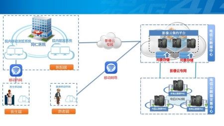 1、云网资源建设要想将医院PACS系统内的报告、电子胶片、DICOM影像等医疗信息共享给患者,保障医疗相关数据传输服务质量,优质互联网专线和可靠安全的云存储服务必不可少。经过评估和测试,医院最终与本地电信企业达成协议,由上海电信为医院提供稳定、安全可靠的云存储服务和网络资源。