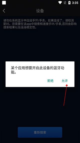 5、一直检索直至手环发生四位匹配码,输入四位匹配码点击明确,连接成功。(检索时请确保手环处在点亮的情况)