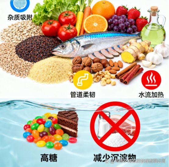选择深海鱼、坚果、橄榄油等富含不饱和脂肪酸的食物,它们能增强"管道"壁的柔韧性和弹性,防止硬化或破裂。
