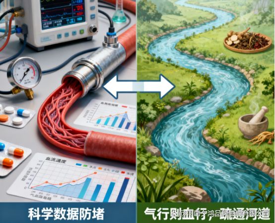 中医呢,把气血循环看成跟大自然连着的活水系统,讲究“气推动血”。它觉得气血就像河里的水,得让它流得畅快,还不冷不热刚刚好。中医关心的是整个身体的气顺不顺,通过“望闻问切”(比如看舌头、把脉)来判断“水流”是不是堵住了(血瘀)、是不是“水太多了”(痰湿)或者“水不够了”(气血虚)。然后用草药、扎针、推拿这些方法,像疏通河道、调节水流、补充水源那样,就想让身体里的“水工程”恢复自然顺畅。