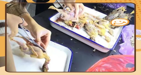 随着鹌鹑的成长,饲养密度逐渐增大,为了更深入地了解它们的生长状况和内脏构造,我们在11月16日对大部分鹌鹑进行了屠宰和细致的观察。在屠宰过程中,我们尝试了两种放血方法:颈部放血与口腔放血。颈部放血操作简便,放血速度较快,而口腔放血则能有效避免颈部污染,使屠体外观更为完整美观。通过解剖观察,我们深入了解了鹌鹑的内脏结构和器官构造,这次实践不仅是一次宝贵的学习机会,也让我们更加熟悉解剖流程,对鹌鹑的内脏器官和发育状况有了更全面的了解。