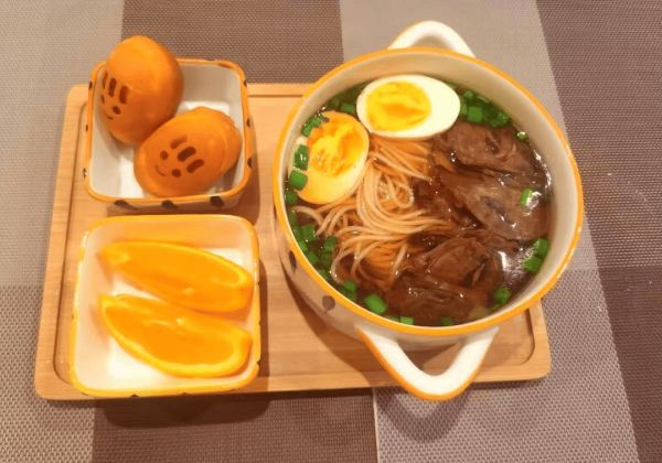 1.牛肉鸡蛋面(营养丰富,既能提供蛋白质又能增强体力)
