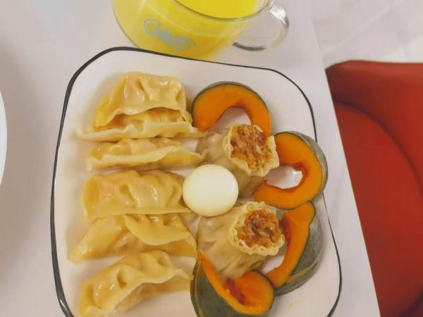 2.蒸饺烧卖小南瓜+鸡蛋(传统美食搭配,口感丰富,满足多种营养需求)