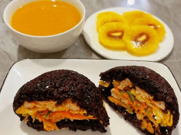 5.紫米饭团+胡萝卜山药米糊+猕猴桃(这款搭配富含抗氧化物,帮助保持皮肤年轻)