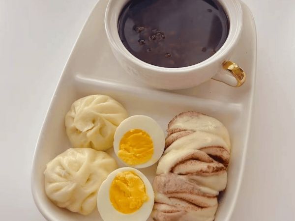 6.红豆粥+小笼包+鸡蛋+花卷(满足口感又营养均衡)