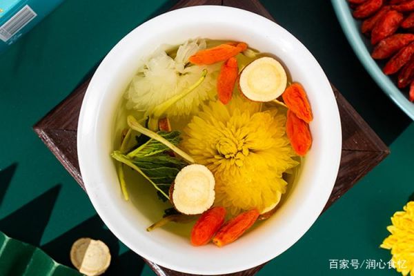 1、将菊花、金银花、甘草、淡竹叶、枸杞等食材用清水稍微清洗一番。菊花茶的品种有很多,大家可以根据自己的喜好选择。