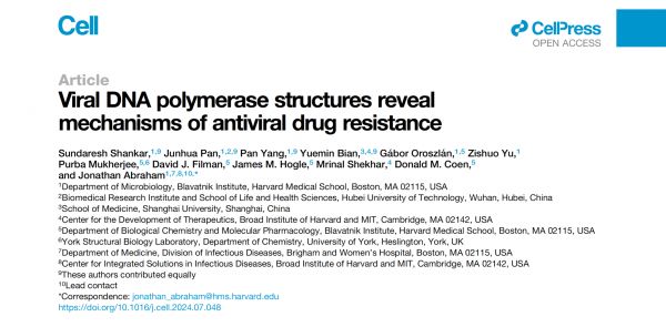 近日,湖北工业大学生命科学与健康工程学院潘军华教授团队在《Cell》在线发表了题为“Viral DNA polymerase structures reveal mechanisms of antiviral drug resistance”(病毒DNA聚合酶结构揭示抗病毒药物耐药机制)的研究论文(原文链接:https://www.cell.com/cell/fulltext/S0092-8674(24)00842-0),为我校首次在三大顶刊之一的《Cell》上发表研究成果。潘军华教授为共同第一作者,哈佛医学院为第一通讯单位,湖北工业大学为第二通讯单位。