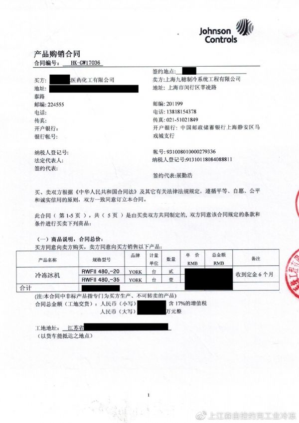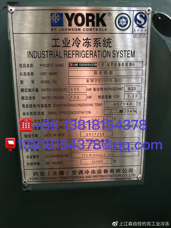 根据工艺的不同,通常所需要的低温盐水温度有- 15℃, -20℃, -25℃,-30℃等多种。新华制药,华瑞制药,上海迪赛诺制药公司、龙沙制药公司、华义医药、乳源东阳光药业、埃斯特维华义制药有限公司以及崴尼达医药等制药公司等,在原料药生产工艺中,均选用过约克冷冻盐水机组,使用的机型包括RXF、RWKII-BC、RWFII480E,选用的制冷剂有R717、R507、R22、R134A等。