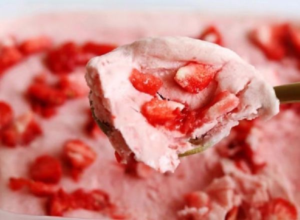 食材:成熟芒果2个(或草莓300g)、淡奶油150ml、糖20g(根据水果甜度调整)