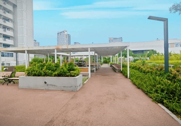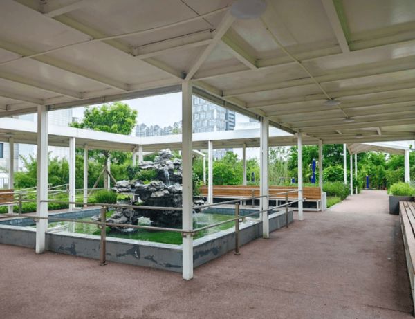 四大立体花园:结合广州亚热带气候,打造遮阳连廊、园艺疗愈区及800㎡屋顶跑道,绿化率达35%;