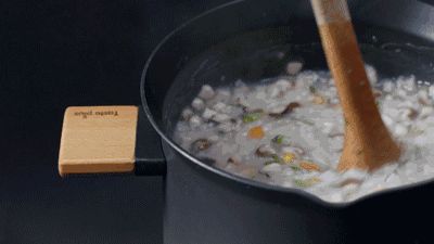 2)锅内倒入泡好的大米和清水,中火炖煮40分钟左右。