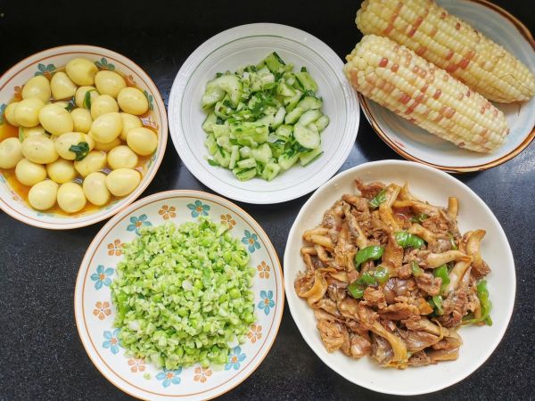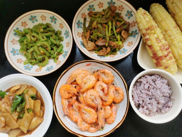 主食可以选择容易消化、对肠胃比较友好的发面馒头,吃米饭的话可以大米小米混合蒸或者直接蒸维生素和矿物质较为丰富的杂粮饭。菜可炒、可蒸、可炖,但是尽量不要油炸。肉类,比如鱼、蛋、瘦肉不能少,这是优质蛋白质的来源,可以保证下午时间的专注力集中,清蒸鱼、鸡蛋羹、青椒炒瘦肉等等都可以。富含维生素和膳食纤维的蔬菜可以促进消化,增强抵抗力,像胡萝卜、菠菜等还能缓解眼疲劳。还可以准备一份清淡的汤羹,或者清热消暑的绿豆汤。饭后来点水果,可以用小番茄、香蕉、苹果、橙子等做个水果拼盘。