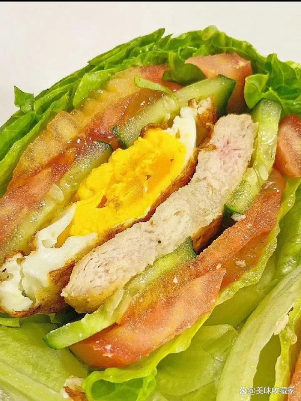3️⃣ 鸡胸肉蔬菜三明治(蛋白质:26g|热量:380kcal)