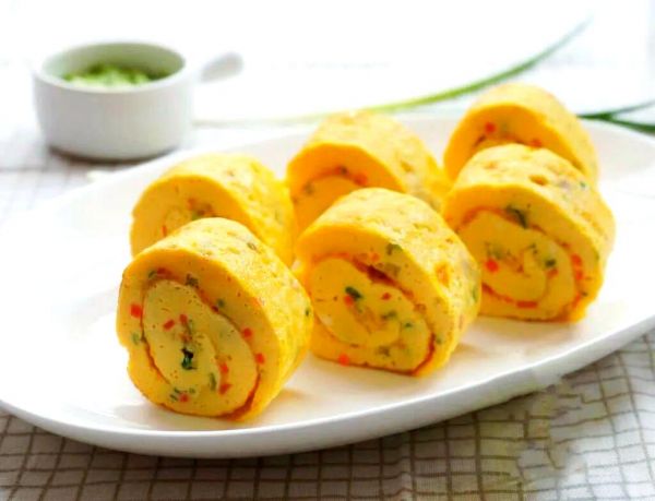 此外,我们还可以尝试制作沙拉鸡蛋卷。这道甜点同样美味且简单易做。只需将鸡蛋打散后加入适量牛奶和白糖,搅拌均匀后倒入吐司面包中卷起,再煎至两面金黄即可。简单加入沙拉酱与蔬菜,轻松卷出美味的甜点。