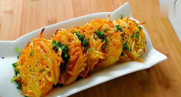 此外,我们还可以尝试制作土豆饼。这道点心同样简单且美味。只需将土豆蒸熟后压成泥,加入面粉、鸡蛋和适量的水搅拌均匀,再煎至两面金黄即可。切丝土豆与面粉混合,油煎至金黄色,制成美味可口的小圆饼。