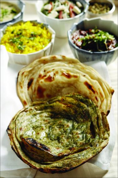 米饭和烤饼是印度人的两大主食,烤饼更加突出一些。印度家家户户都有制作烧烤的烤炉,印度语中烤炉叫“TANDOOR”。“泊兰馕”是将未发酵的面粉和匀,放在烤炉中烤成的薄饼。“泊兰馕”相当于西餐中的餐包,味香且有嚼劲,也因此不同于“印度抛饼”。