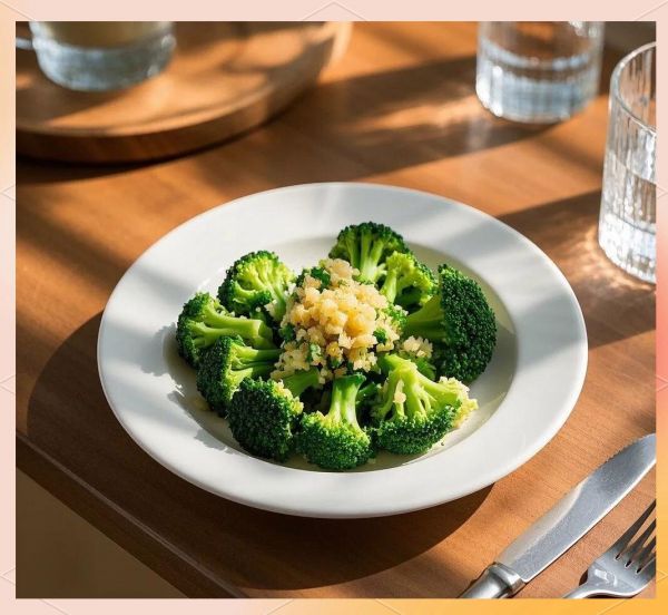 快速翻炒西兰花结合蒜香调味,保证其脆嫩和营养。