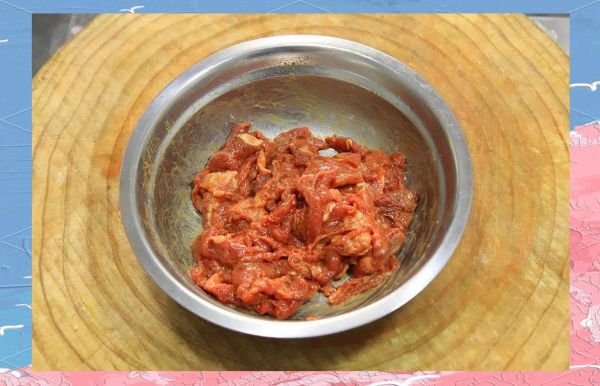 将牛里脊肉切片,并用腌料腌制10分钟,保持其鲜嫩。