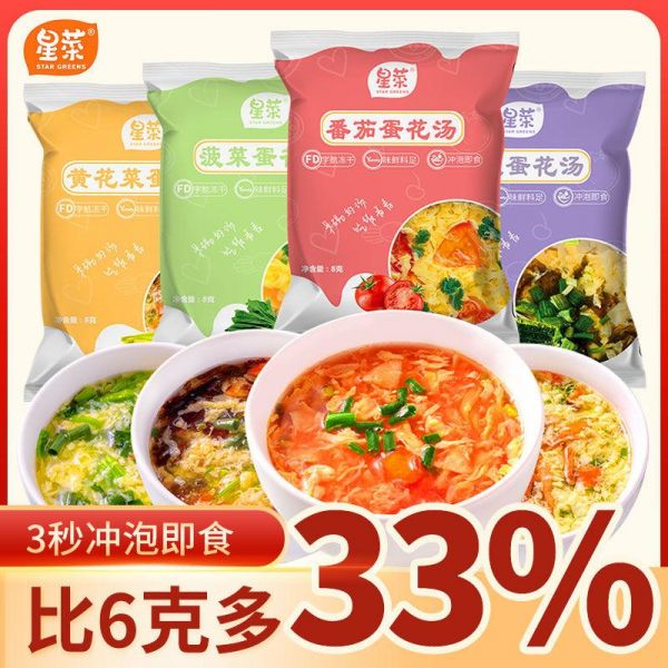 当微波炉热饭的塑料味成为打工人的噩梦,当外卖APP的配送费比餐费还贵,一种源自航天科技的冻干食品正在悄悄改变我们的就餐方式。星菜冻干冲泡汤的出现,就像给快节奏生活按下暂停键——8g的独立小包装里,锁住了紫菜的鲜、番茄的酸、菠菜的翠,以及蛋花的柔嫩,热水冲开的瞬间,仿佛能听见蔬菜细胞重新舒展的声音