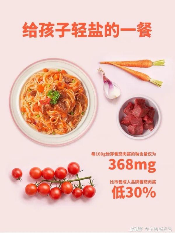 本次进入意大利面TOP10的怡芽在今年年初获得获得天使轮投资,主要面向3-12岁儿童群体提供一日三餐的解决方案。以怡芽的番茄肉酱意面为例,天猫店铺产品详情页显示,这款产品的番茄肉酱比成人产品钠含量低30%,同时意面也进行了定制化,“面细、短面”,更加符合儿童饮食习惯,更注重营养搭配和健康。