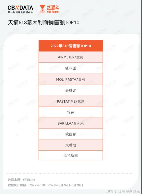 但具体到品牌来说,细分类目的TOP品牌依旧有着不错的表现,如意大利面的TOP1空刻、螺蛳粉类目的TOP1好欢螺均进入了天猫618食品大类总榜单的TOP20。具体到赛道,意面整体和肉制品/肉类罐头成为仅有的2个今年618正增长的细分品类。