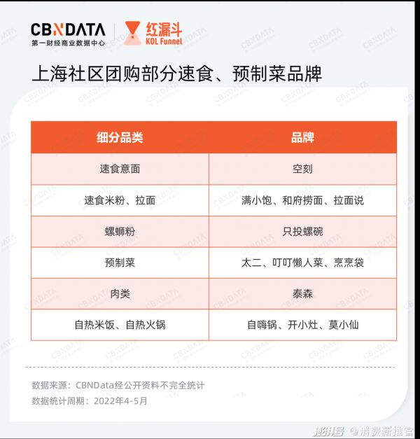 2022年4-5月,一些方便速食和预制菜品牌通过社区团购的方式积极走入线下。据不完全统计,空刻、太二、叮叮懒人菜、和府捞面、自嗨锅等多个品牌都有参与组织社区团购。小范围的调研结果显示,诸如空刻、满小饱、太二等品牌相对赢得更多的好感度,比如空刻的意面还原度高、仪式感强,满小饱独特的“肥汁”口味令人上头,太二酸菜鱼加量不加价等。多位用户向CBNData表示,空刻、满小饱均属于回购清单。在方便速食的消费降级趋势虽然存在,但消费者同样愿意为“物有所值”的品牌买单。