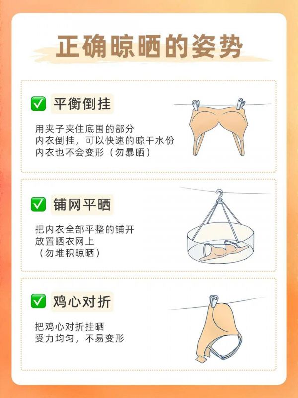 晾干再穿:内衣一定要晾干了再穿,避免发霉和细菌滋生,保护胸部健康。
