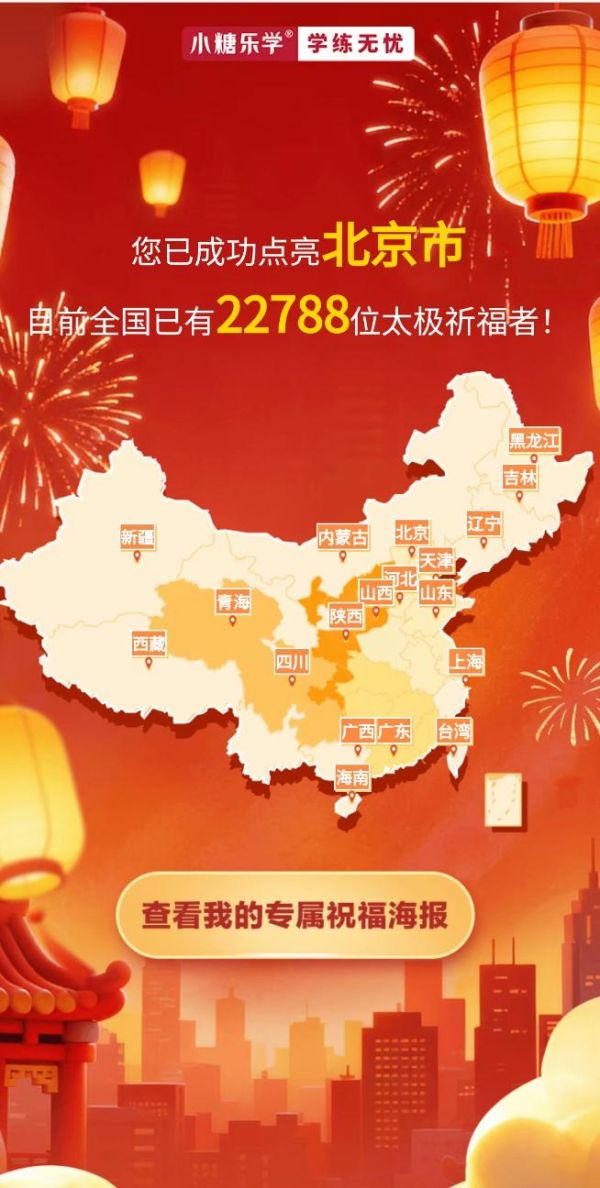 作为中华传统文化瑰宝,太极不仅是一套强身健体的拳法,更蕴含着“阴阳平衡、动静相宜”的生活哲学。在“小糖乐学”银发学习平台打造的社群中,许多参与者表示,相比以往单一的娱乐方式,这种集展示、社交于一体的活动,让他们找到了更强的乐趣与精神满足。“我们在微信群里分享AI生成的专属祝福海报,还能看到其他‘拳友’所在城市的实时点亮状态,以前没接触过感觉特别有趣。”来自上海的陈叔叔展示手机屏幕上城市点亮地图的界面。