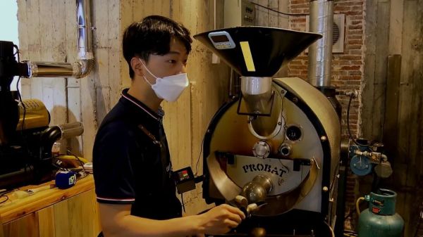 “咖啡豆的烘焙方法主要有三种,分为直火烘焙、半直火烘焙、热风烘焙,今天在我们旁边的这款烘焙机是半直火烘焙的方式……”韩国街旁的“咖啡伦敦”咖啡馆内,研学中心的咖啡讲师正在指导咖啡爱好者学习咖啡烘焙原理和技巧。虽是处在节日休息时间,但市民们依然兴致高涨,挑咖啡豆,上手体验烘焙过程,品尝不同咖啡豆的口味,在研习中不亦乐乎。
