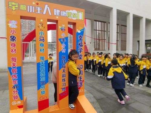 为让同学们清楚的认识到健康饮食的主要性,特将寓教于乐的活动--“健康挑战门”带到校园。早上第一节课,在各个班级老师的带领下,一年级328名学生欢呼雀跃的全部完成挑战,通过“小牛身材”“小马身材”“小象身材”等童趣的游戏名称引导同学们加强锻炼、控制食欲。