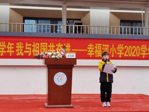 在启动仪式上幸福河小学周虹校长为孩子们送上第四个礼物--学校健康行动七个一,即“一个目标”:每位孩子制定“争做健康牛娃”的健康目标书;“一个365”:启动365健康运动,坚持每天校内锻炼1小时,每天回家锻炼1小时;“一组比赛”:如体育节、国象节、科创节、棒垒球比赛等丰富多彩的活动;“一堂课”:每周安排一节劳动课,每半月安排一次心理课;“一张训练表”:个别同学觉得视力、体重自己控制不了,需要帮助,学校老师帮你一起制定科学的训练计划,并持续跟进;“一项评比”:视力、体重作为学校学生评优最重要的参考内容;“一份承诺”:养成良好坐姿、站姿和写字姿势,养成良好的作业习惯,养成科学用眼习惯,养成早睡早起的习惯。