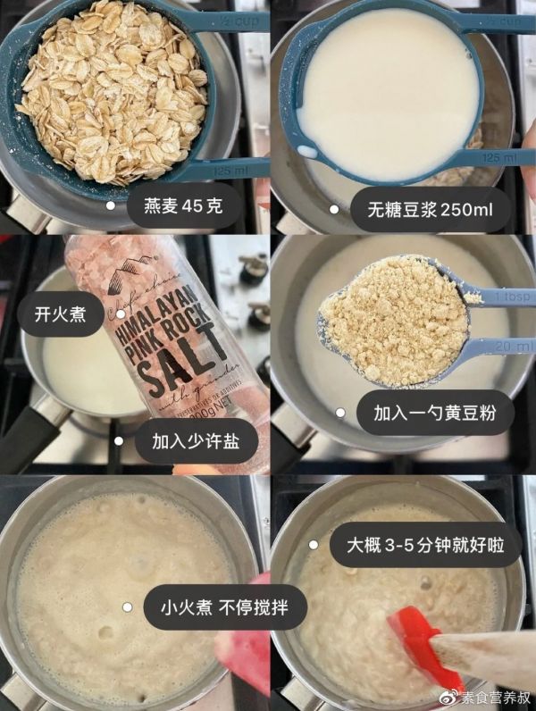 无糖豆浆可换成任何植物奶,用的250ml煮的,清淡口的宝宝可换成125ml奶+125ml水,热量也会低一些。