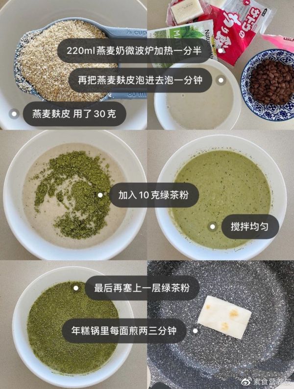 • 抹茶燕麦粥配自制蜜豆烤年糕 396 kcal •