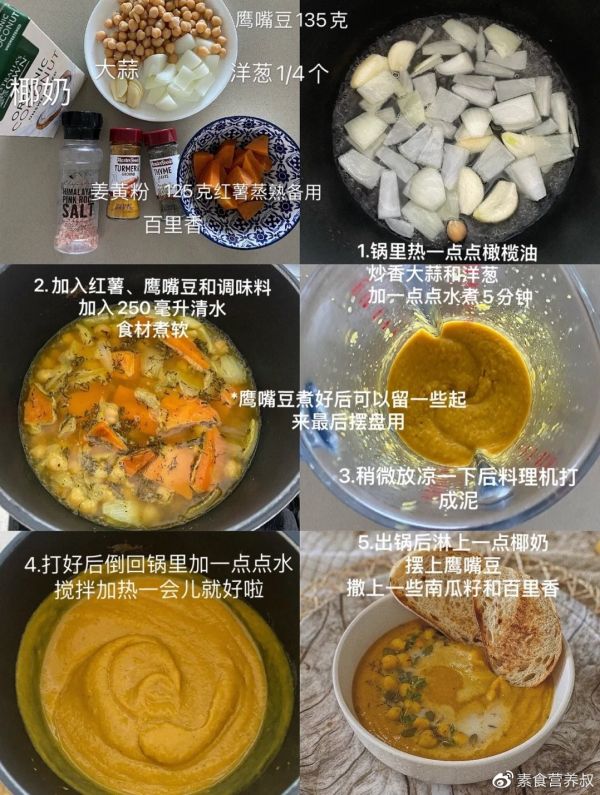 • 红薯鹰嘴豆浓汤配烤面包 541 kcal •
