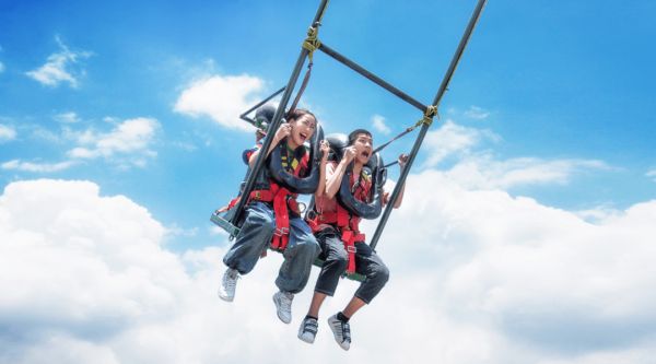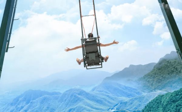 爬到山顶坐上秋千,从高高的平台上荡出去,你就可以欣赏到从山顶才可以看到的景区的高空全景,还可以体会高空项目独有的刺激体验,相信在那一瞬间你的身体就会同时分泌出肾上腺素和多巴胺,让你的精神即刻振奋,忘记爬山上去的劳累。