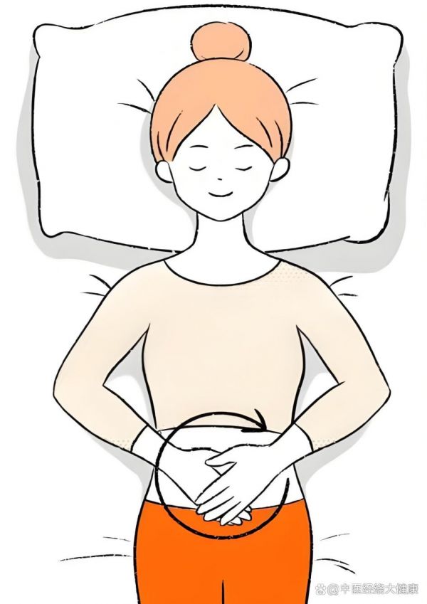 动作要领:双手掌心交替顺时针摩腹,范围覆盖神阙、关元、气海等穴位,每次 50 圈 。