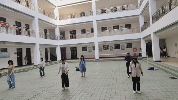 活动以“健康同行,快乐共享”为主题,将传统踏步运动与创意规则相结合,设计了兼具趣味性和挑战性的比赛环节。全体老师每6人一组,蒙眼原地踏步走一分钟,一分钟后离起始位置更近者获胜。老师们积极热情参加活动,现场洋溢着轻松愉悦的氛围。