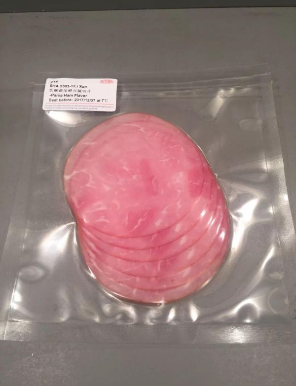 乳酸菌发酵火腿片,融合了杜邦营养与健康的直投式乳酸菌发酵技术,并辅以天然发色工艺,打造出高端发酵火腿切片。其口感更加弹脆,色泽红润诱人,同时简化了标签内容。经过发酵,产品的保质期也得到了显著延长。此外,该产品还融合了TEXEL SP-441乳酸菌混合菌种的优势,这种菌种具备多菌种发酵能力,既耐高温又发酵速度快,同时兼顾酸化和发色效果。其工艺简便,作为配料直接添加即可快速形成优势菌群,且不影响现有工艺流程。产品品质上乘,口感更佳,色泽红亮,标签清洁明了。更重要的是,该产品采用天然发色工艺,确保了产品的安全与健康。在冷藏条件下,产品的保质期可达3个月以上。