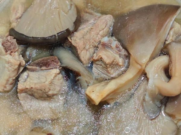 3、最后把平菇清洗干净放入,再继续煮三分钟煮熟,接着加入适量的食盐调味,即可出锅开吃。