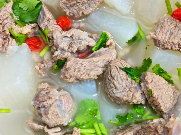 准备食材: 牛肉、白萝卜、姜片、枸杞子、香菜碎。