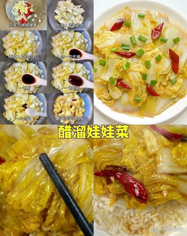 娃娃菜清甜软嫩,加上适量的醋调味,更是清新爽口,酸甜适中。这道菜能很好地帮助消化,非常适合节后大快朵颐后的调理。